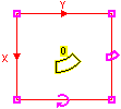 If the Bend parameter of the region is set to 0, the region behaves like a rectangle. The height and width of the rectangle (in pixels) are displayed near its center point. When using the mouse, the height and width of the rectangle (in pixels) are displayed in the status bar. The height and width can be altered by the following methods: