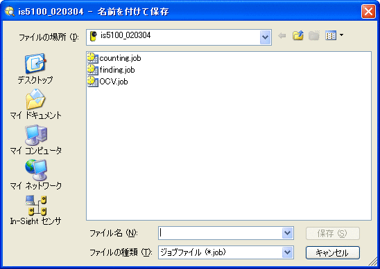 In-Sight ビジョンシステムにジョブファイルを保存するには、以下の操作を実行します。