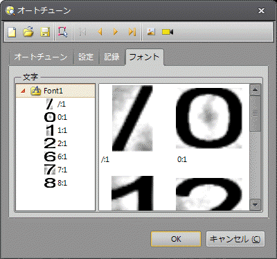 [オートチューン] ダイアログを使用した OCR アプリケーションの文字の登録およびセグメンテーションプロセスは、以下により構成されます。