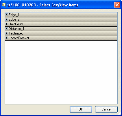 - ジョブが元々 EasyBuilder で作成されている場合、[Select EasyView Items] ダイアログにはジョブに追加された位置決めツールや検査ツールからのデータが自動的に組み込まれます。