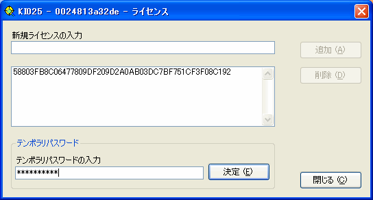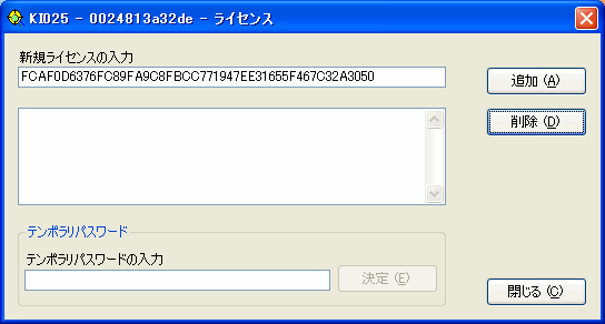 注 : [EasyBuilder ライセンス] ダイアログに、[テンポラリパスワードの入力] フィールドは含まれません。 - [追加] ボタンをクリックします。