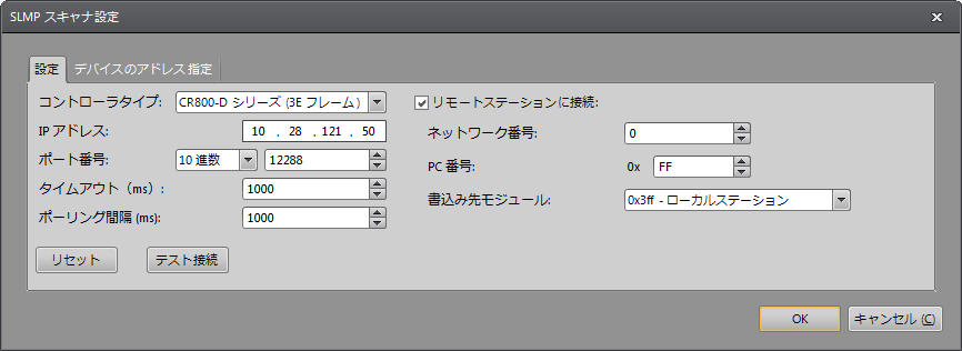 [SLMP スキャナ設定] ダイアログ