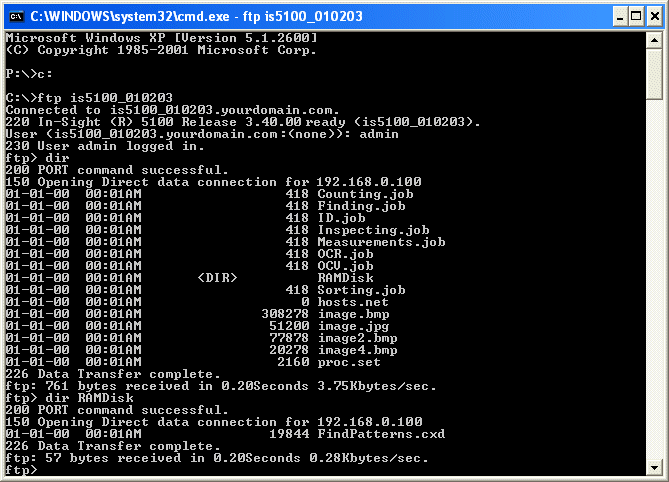 FTP コマンドプロンプトを使用してセンサに接続します。