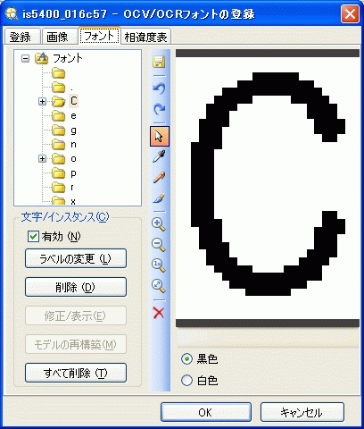 注 : バイナリ文字モデルだけを編集できます。グレースケール文字インスタンスは読み取り専用です。