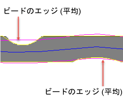 ビードパス沿いに検出されたビードエッジの平均の位置を表示します。