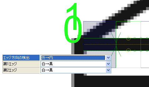 [エッジ方向の検出] パラメータに従って、検出された最初のエッジのコントラスト変化を指定します。