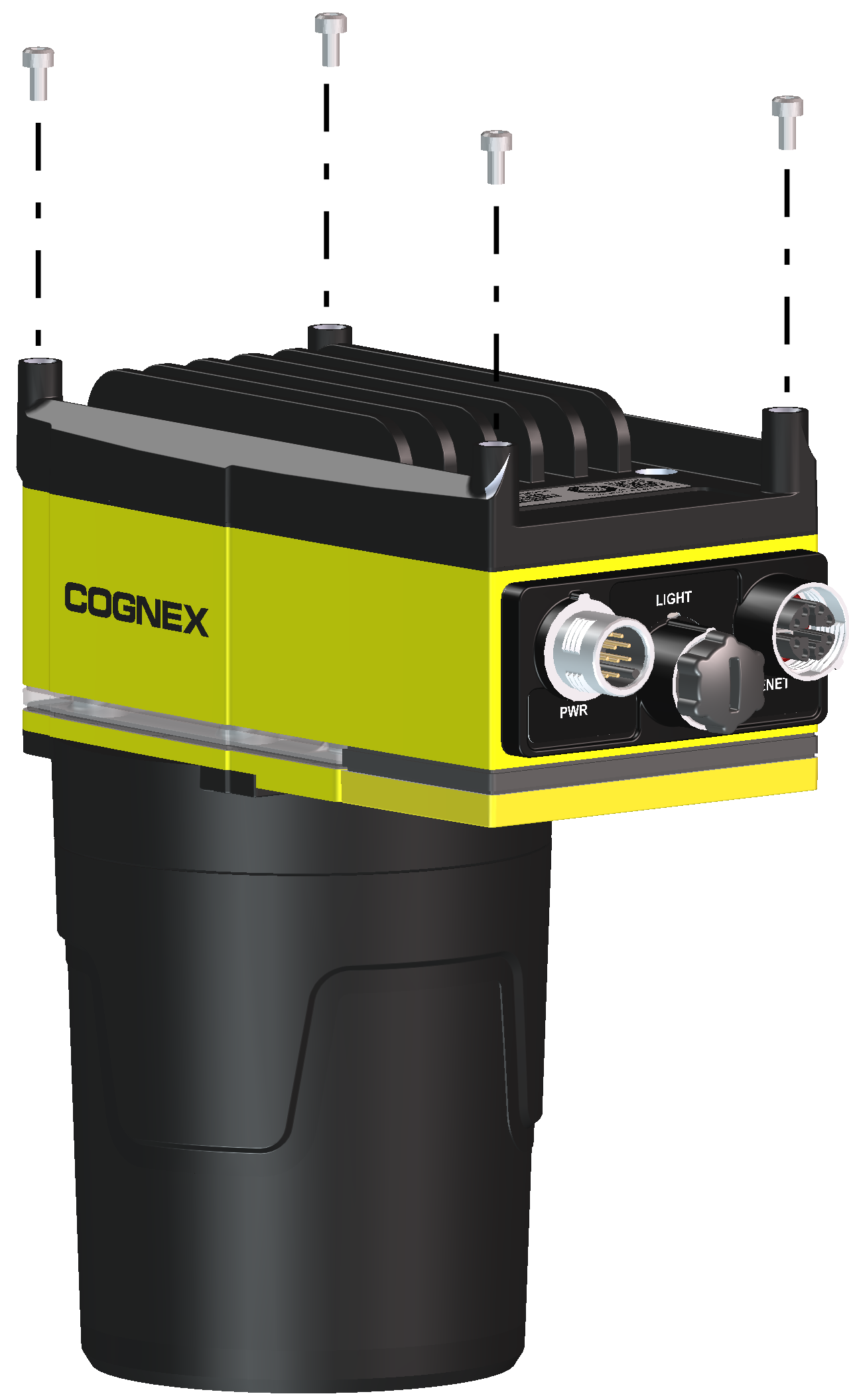 CAUTION:  The vision system should be grounded, either by mounting the vision system to a fixture that is electrically grounded or by attaching a wire from the vision system’s mounting fixture to frame ground or Earth ground. If a ground wire is used, it should be attached to one of the four mounting points on the back plate of the vision system and not to the mounting points on the front of the vision system.