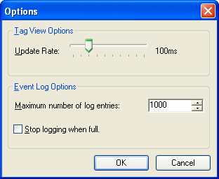 - From the In-Sight OPC Classic Server Runtime window, click View > Options.