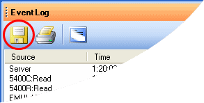 On the Event Log tool bar, click the Save button: