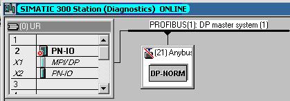 Open the HW Config tool in Online mode. The Anybus X-gateway should be displayed, with no errors (an error is signified by a red line through the Anybus X-gateway's network icon); this will signify that the PROFIBUS connection has been completed correctly.