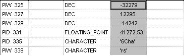 These values are in the string format. In the ProfibusGateway.cxd file, the BGetInt function in cell D22 reads the binary value at Byte 19 (the lower byte of the word read).