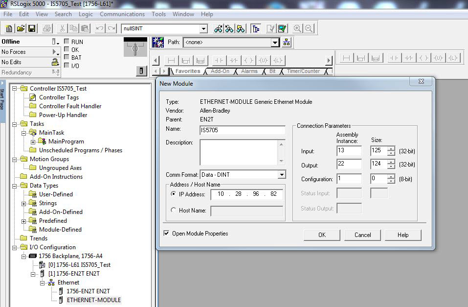 Note: The PLC must be Offline to add connections in RSLogix 5000. -