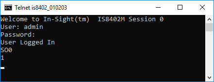 The In-Sight sensor responds with a status code of 1, indicating that the sensor was successfully placed Online.