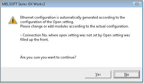 Check the Set Open Setting in Ethernet Configuration window checkbox. The following message will be displayed.