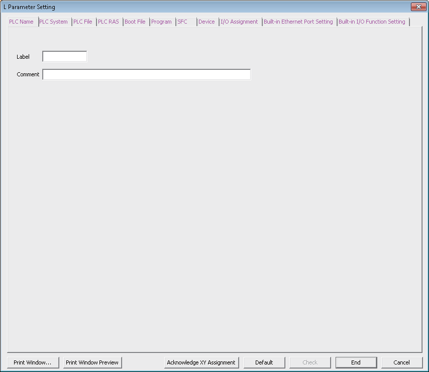 Select Parameter --> PLC Parameter on the Project view. The L Parameter Setting window is displayed.