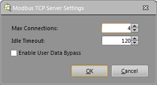 Modbus TCP Server Settings Dialog