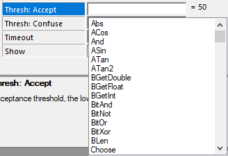 Inserting a function into a Property Sheet parameter allows you to create a dynamic argument. For example, if you had a FindPatterns function, and you needed the Threshold: Accept parameter to change dynamically with the image acquisition based on a set of fluctuating variances, you could insert a Mathematics function into the parameter to compute against those variances. By adding a function within the parameter (instead of creating a separate function within the spreadsheet and building the same formula and then referencing those cells), you can save time and computational space within the spreadsheet.