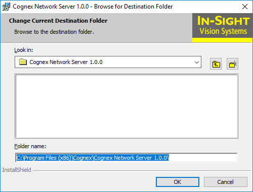 If you want to install the Cognex Network Server to a different folder, click the Change button to open the Browser for Destination Folder dialog. Specify a new installation destination folder, then click OK to confirm.