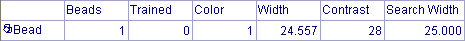 During training, detailed analysis of the bead characteristics are calculated. These calculations will be used to set initial values for a BeadInspect function that references this BeadFind tool.