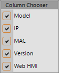 You can customize the In-Sight Network pane by displaying the Model, IP, MAC, Version and/or Web HMI columns. These columns are hidden by default.