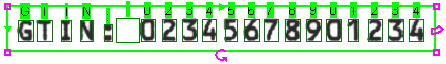 The line of text within the ROI is split into images of the individual characters, and each character is enclosed within a non-editable character rectangle. The ROI defines the approximate location, angle and skew of the line of text. The Angle Range and Skew Range parameters on the Segmentation tab can be used to compensate for variations, if necessary.