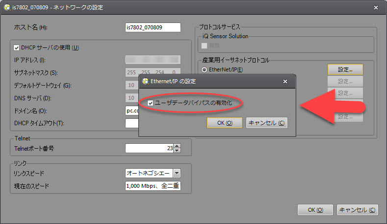カメラの [ネットワークの設定] ダイアログで [ユーザデータバイパスの有効化] が有効になっている場合 (チェックボックスがオン)、In-Sight Explorer スプレッドシートの値が直ちに更新されます。