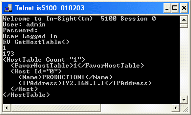 [In-Sight のホストテーブル] ダイアログに含まれる情報を取得するには、次のコマンドを発行します。EV GetHostTable()