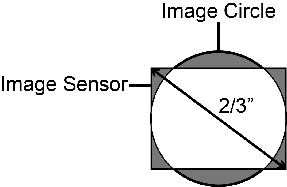 All lenses are designed to cover a certain “image circle” size, which can be found in the lens manufacturer’s specification. The image circle size is the diameter of the optical image the lens can produce. If a vision system has 2/3” image sensor, you must use a lens that produces at least a 2/3” image circle.