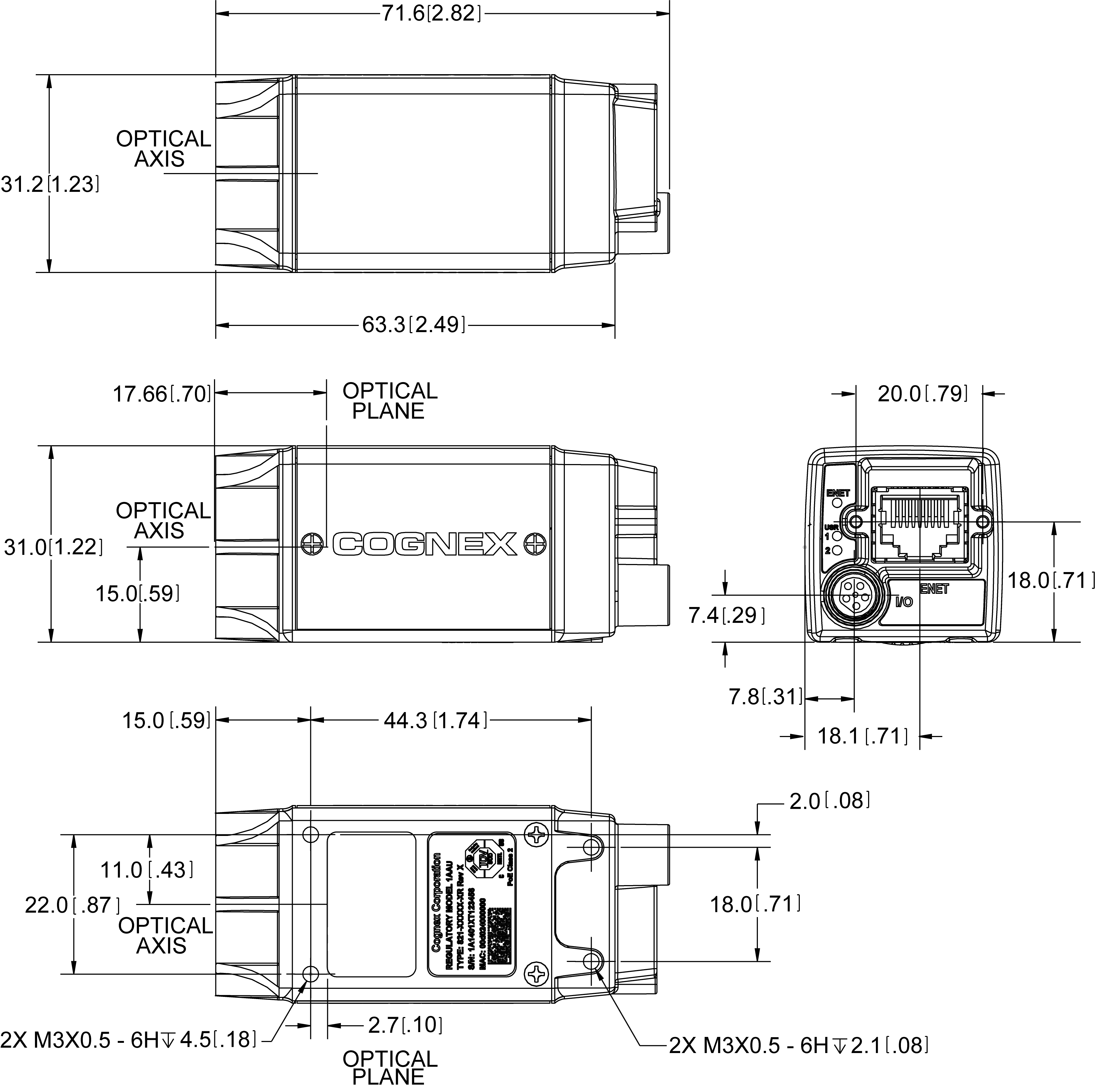 - Dimensions are in millimeters [inches] and are for reference purposes only.