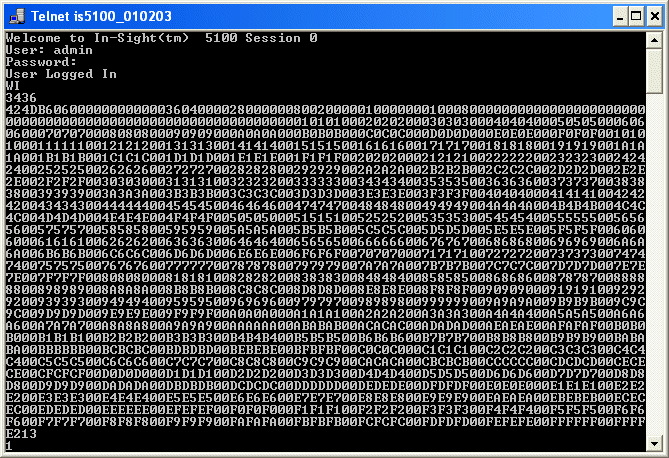 Write Image コマンドを発行した後、最初に入力するのはバイト単位のサイズ (3436) です。 次に、画像データの各 ASCII 16 進バイトを入力します。最後に、4 バイトの ASCII 16 進チェックサム (E213) を最後の行に入力します。