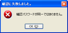 3. 確認用のパスワードが元のパスワードと異なると、検証に失敗し、次のダイアログが表示されます。