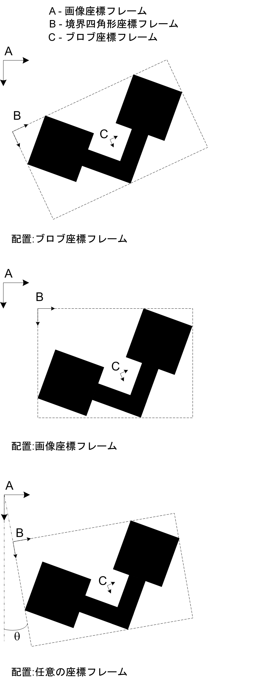 1 = 画像座標フレーム 角度 0° でブロブに最適な矩形を指定します。