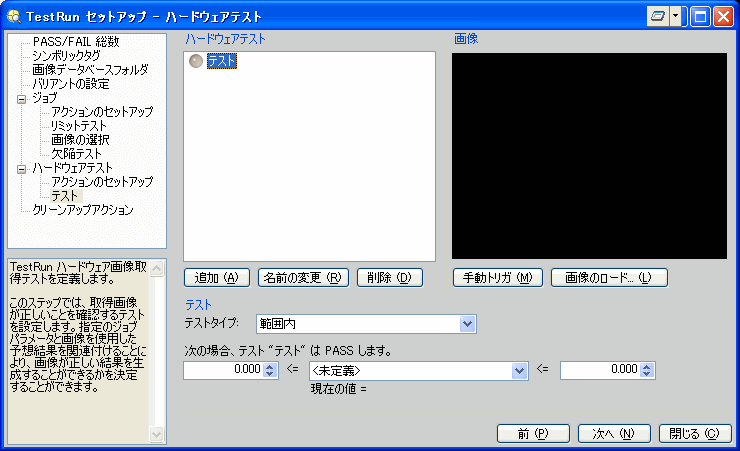 TestRun ビジョンシステムの画像取り込みテストの定義