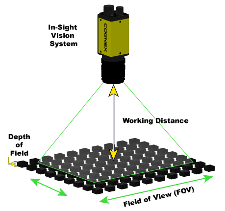 In machine vision applications, without good quality images, no matter how well designed the application, it will not perform well. When considering how to acquire the best image of the part (it must highlights the part's features of interest), first calculate the physical setup that will be required. Determining the proper physical setup of an In-Sight vision system involves calculating the optimal size of the part in the image, the working distance between the vision system and the part, and the optimal Field of View (FOV).