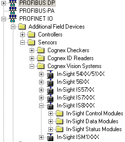 これで、In-Sight ビジョンシステムが PROFINET IO システム上のデバイスとして表示され、特定の PROFINET IO 実装によってサポートされる In-Sight ビジョンシステムの各種モジュールも表示されます。