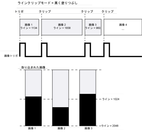 • [トリガ] タイプを [カメラ] に設定し、画像を適切にクリッピングします。 他の [トリガ] タイプでは、画像が取り込まれている間にトリガが到達すると、現在の画像はクリッピングされず、新しく到達したトリガは失敗します。