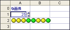 シミュレートした LED ステータスライトをスプレッドシートに挿入します。この関数は、コントロール値から指定されたビットを、2 色の状態がある単一の LED として表示します。
