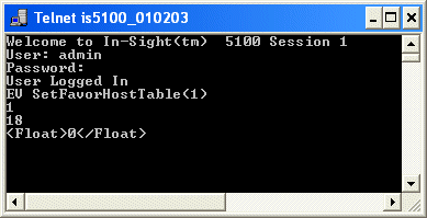 SetFavorHostTable コマンドを発行すると、In-Sight センサはステータスコード (1) で応答し、その後にバイト単位の文字数 (18) が続きます。最後に、結果が XML フォーマットで返されます。