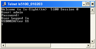 このとき、このパラメータの設定を Set String ネイティブモードコマンドを使用して変更するとします。次の telnet クライアントウィンドウに示すように、コマンド SIText_1.Match_String 604 を発行します。