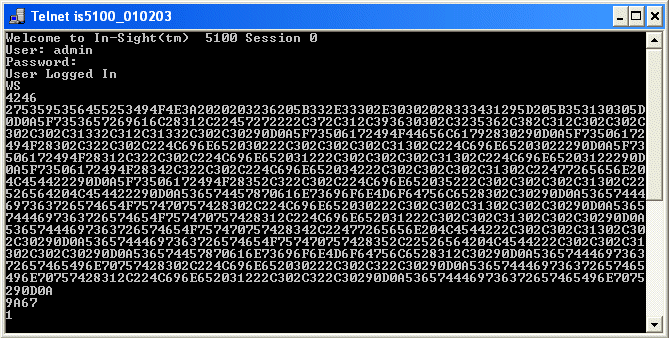 In-Sight ビジョンシステムは、ステータスコード 1 を返すことにより、コマンドが正常に実行されたことを示します。