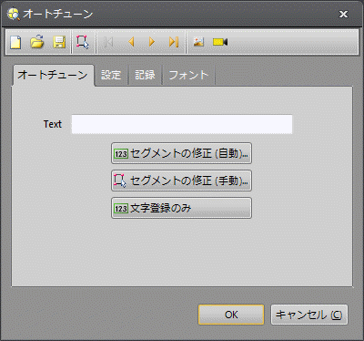 [オートチューン] ダイアログを使用した OCR アプリケーションの文字の登録およびセグメンテーションプロセスは、以下により構成されます。
