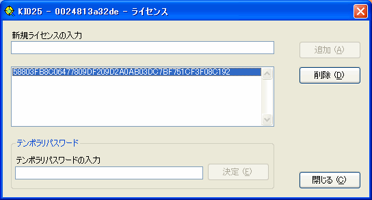 注 : [EasyBuilder ライセンス] ダイアログに、[テンポラリパスワードの入力] フィールドは含まれません。 - [追加] ボタンをクリックします。