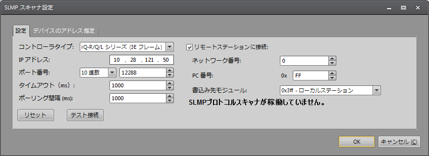 [SLMP スキャナ設定] ダイアログ
