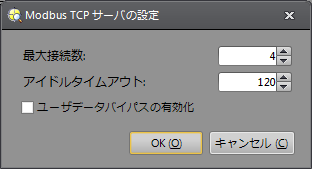 [Modbus TCP サーバの設定] ダイアログの設定項目