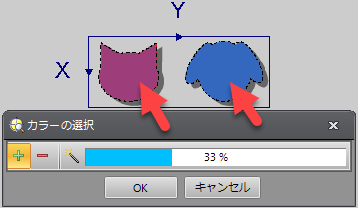 - 複数の領域を選択するときには、[カラーの選択] ダイアログで