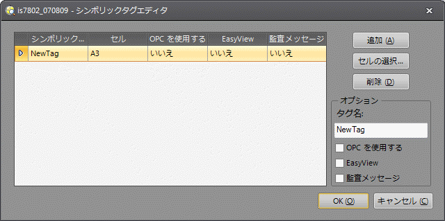 [シンボリックタグエディタ] ダイアログの設定項目