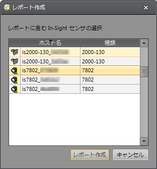 - レポートに含めるすべての In-Sight センサをハイライト表示します。