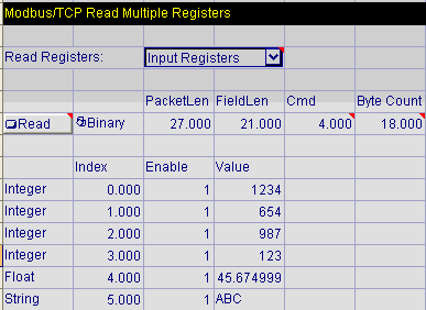 セル NC で、[Read Registers] のドロップダウンリストから、[Input Registers] を選択します。