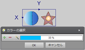 [カラー選択] ダイアログを使用して、登録するカラーを指定します。ジョブでボタンまたは数値を参照することができます。ゼロ以外の値はボタンを押したものとして扱われ、[カラー選択] ダイアログを開きます。
