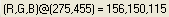 1 つ目の例では、カーソルが (x,y) = (173,266) にあり、8 ビットのグレースケール値は 159 です。2 つ目の例は In-Sight カラーセンサからのもので、カーソルは (x,y) = (275,455) にあり、赤、緑、青の色成分は (R,G,B) = (156,150,115) です。